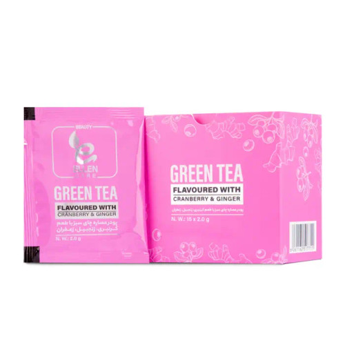 پودر عصاره چای سبز الن کر با طعم کرنبری، زنجبیل و زعفران - بسته 15 عددی