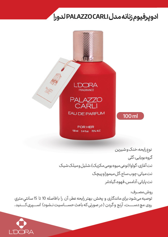 ادوپرفیوم زنانه مدل پالازو PALAZZO CARLI لدورا فرگرنس 100 میلیلیتر