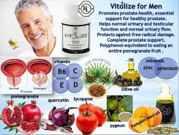 همینطور مکمل غذایی ویتولایز اقایان محصول شرکت فوراورلیوینگ حاوی عصاره گیاه پیژیوم، ویتامین D، ویتامین E، ویتامین C و B6 است که همگی در سلامت پروستات، مثانه و جلوگیری از عفونت های مجاری ادراری و همینطور تقویت قوای جنسی و بهبود حجم و حرکت اسپرم نقش مهمی دارند. همچنین این مکمل حاوی پلی فنول های مورد نیاز بدن انسان معادل مصرف یک انار کامل هستند، که مقاومت بدن را در برابر سرطان های پروستات، سینه، پوست و روده بزرگ افزایش میدهند.