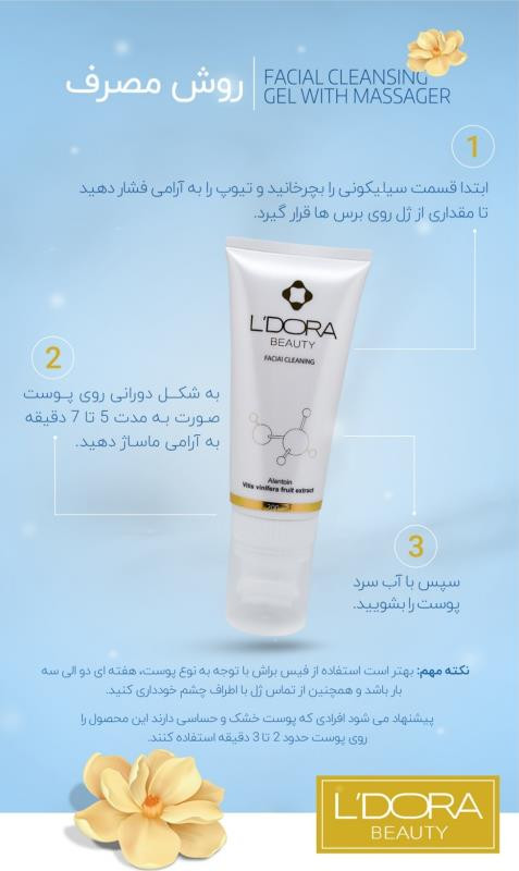 روش استفاده ژل شستشوی صورت ماساژوردار لدورا کر LEDORA حجم 200 میل: