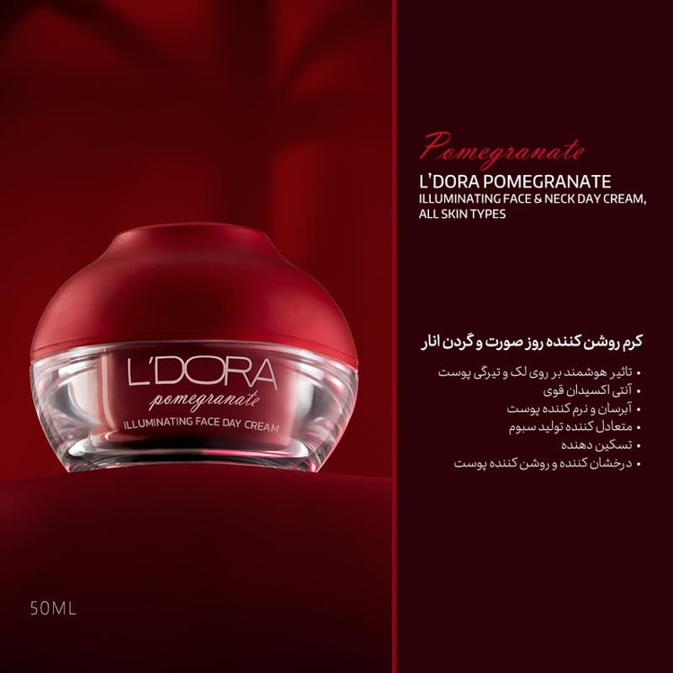 کرم روشن کننده روز صورت و گردن انار مناسب انواع پوست ، 50 میلی لیتر