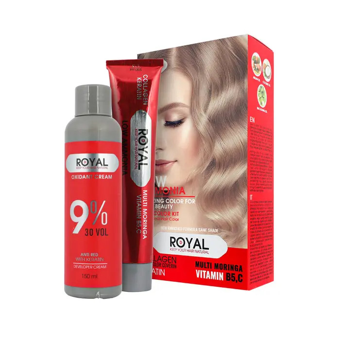 این کیت شامل 2 محصول است که یک تیوپ رنگ مو و یک اکسیدان به همراه کلاه، دستکش و قلمموی رنگ میباشد – پکیجی کامل برای اجرای بینقص در خانه یا سالن.