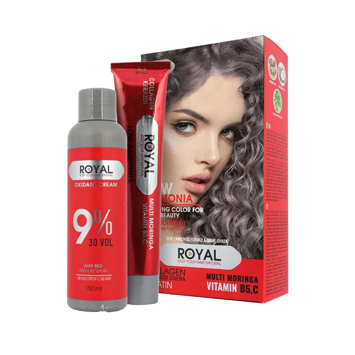 این کیت شامل 2 محصول است که یک تیوپ رنگ مو و یک اکسیدان به همراه کلاه، دستکش و قلمموی رنگ میباشد – پکیجی کامل برای اجرای بینقص در خانه یا سالن.