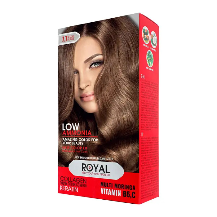 کیت رنگ مو بلوند نسکافه ای رویال کد 7.7