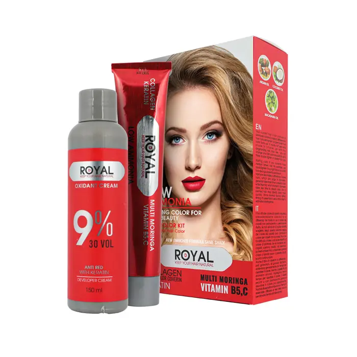 این کیت شامل 2 محصول است که یک تیوپ رنگ مو و یک اکسیدان به همراه کلاه، دستکش و قلمموی رنگ میباشد – پکیجی کامل برای اجرای بینقص در خانه یا سالن.
