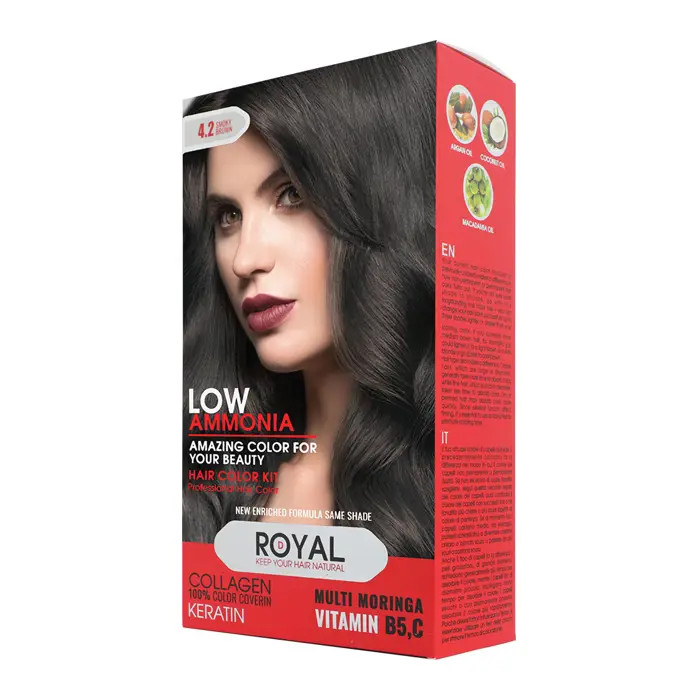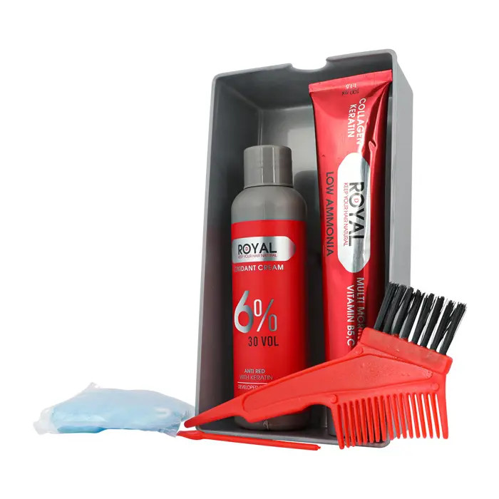 این کیت شامل 2 محصول است که یک تیوپ رنگ مو و یک اکسیدان به همراه کلاه، دستکش و قلمموی رنگ میباشد – پکیجی کامل برای اجرای بینقص در خانه یا سالن.