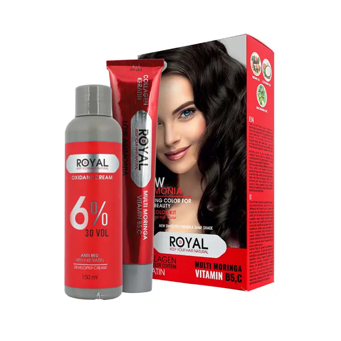 این کیت شامل 2 محصول است که یک تیوپ رنگ مو و یک اکسیدان به همراه کلاه، دستکش و قلمموی رنگ میباشد – پکیجی کامل برای اجرای بینقص در خانه یا سالن.