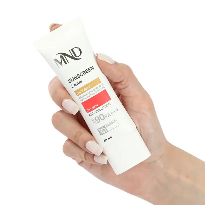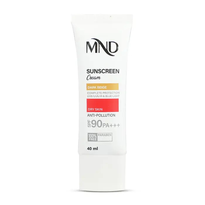 تابش طولانی مدت نور خورشید، یکی از عوامل تسریعکننده پیری زودرس پوست است. اشعههای UVA و UVB خورشید با ایجاد رادیکالهای آزاد، به ساختارهای حیاتی پوست آسیب رسانده و موجب تسریع روند ایجاد لک و چین و چروک میشوند. تحقیقات علمی اخیر همچنین نشان دادهاند که طیف مادون قرمز ساطع شده از خورشید و نور آبی منتشر شده از لوازم الکترونیکی (رایانه، گوشی همراه و...) نیز در آسیبرسانی به پوست نقش دارند. در نتیجه، برای تولید یک محصول ضدآفتاب کامل، مقابله با این اشعهها نیز باید مورد توجه قرار بگیرد. این کرم ضدآفتاب ام ان دی با فاکتور حفاظتی 90، به رنگ بژ تیره و مناسب برای پوست خشک تولید شده است. این محصول فاقد پارابن بوده و با بهرهگیری از ترکیبات و فیلترهای مناسب، قادر است مانع از صدمه دیدن پوست توسط اشعههای فوقالذکر شود.