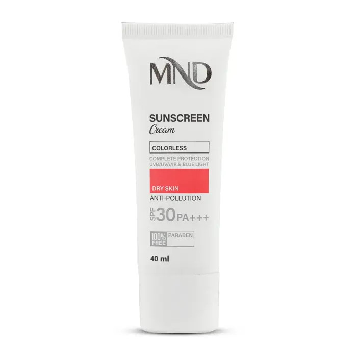 تابش طولانی مدت نور خورشید، یکی از عوامل تسریعکننده پیری زودرس پوست است. اشعههای UVA و UVB خورشید با ایجاد رادیکالهای آزاد، به ساختارهای حیاتی پوست آسیب رسانده و موجب تسریع روند ایجاد لک و چین و چروک میشوند. تحقیقات علمی اخیر همچنین نشان دادهاند که طیف مادون قرمز ساطع شده از خورشید و نور آبی منتشر شده از لوازم الکترونیکی (رایانه، گوشی همراه و...) نیز در آسیبرسانی به پوست نقش دارند. در نتیجه، برای تولید یک محصول ضدآفتاب کامل، مقابله با این اشعهها نیز باید مورد توجه قرار بگیرد. این کرم ضدآفتاب ام ان دی با فاکتور حفاظتی 30، فاقد پارابن و مناسب برای پوست خشک تولید شده است. این محصول با بهرهگیری از ترکیبات و فیلترهای مناسب، قادر است مانع از صدمه دیدن پوست توسط اشعههای فوقالذکر شود.
