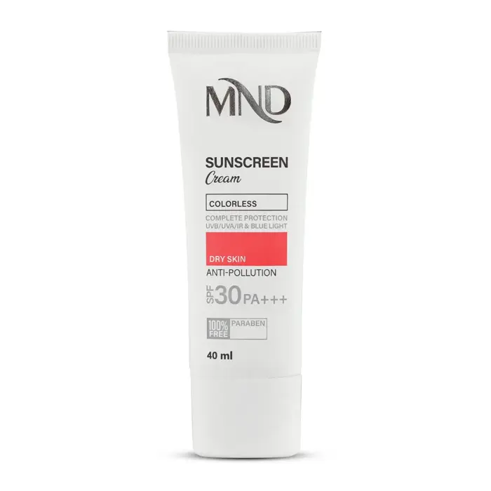 تابش طولانی مدت نور خورشید، یکی از عوامل تسریعکننده پیری زودرس پوست است. اشعههای UVA و UVB خورشید با ایجاد رادیکالهای آزاد، به ساختارهای حیاتی پوست آسیب رسانده و موجب تسریع روند ایجاد لک و چین و چروک میشوند. تحقیقات علمی اخیر همچنین نشان دادهاند که طیف مادون قرمز ساطع شده از خورشید و نور آبی منتشر شده از لوازم الکترونیکی (رایانه، گوشی همراه و...) نیز در آسیبرسانی به پوست نقش دارند. در نتیجه، برای تولید یک محصول ضدآفتاب کامل، مقابله با این اشعهها نیز باید مورد توجه قرار بگیرد. این کرم ضدآفتاب ام ان دی با فاکتور حفاظتی 30، فاقد پارابن و مناسب برای پوست خشک تولید شده است. این محصول با بهرهگیری از ترکیبات و فیلترهای مناسب، قادر است مانع از صدمه دیدن پوست توسط اشعههای فوقالذکر شود.